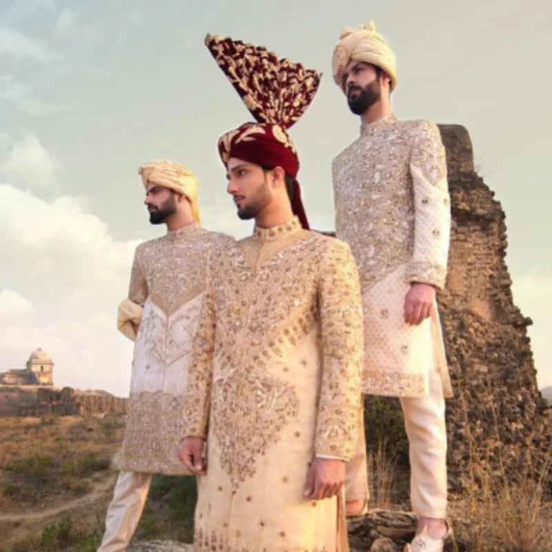 Brooches, patterned buttons, or pocket squares add a touch of personalized elegance. You can mix and match colors to create unique pairs based on the event theme. This trend allows men to enjoy creativity and fashion versatility without buying multiple expensive outfits. It remains a top choice for stylish men who want a royal presence in celebrations.
